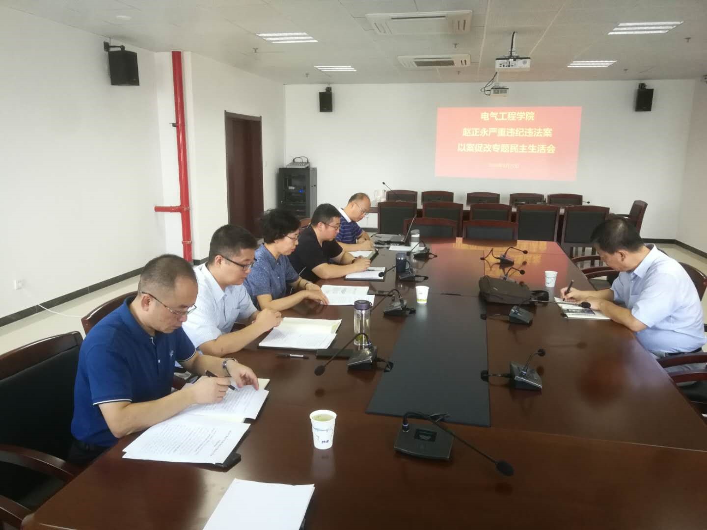 2020年8月27日下午,电气工程学院赵正永严重违纪违法案以案促改专题民主生活会在曲江校区综合教学实验楼1211会议室召开,会议由李虹书记主持,副校长刘军到会予以指导。