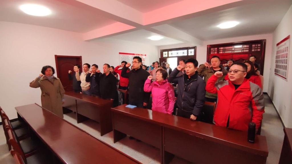 在金米村的会议室,院党委书记李虹带领全体同志宣读了入党誓词。全体同志在村干部介绍下,沿着习近平总书记今年4月20日在金米村考察的路线,聆听着总书记考察时的每个细节、重温着总书记嘱托。大家通过金米村这个地处秦岭深处曾经深度贫困的山村,在脱贫攻坚中通过发展木耳、中药材、旅游等产业实现整村脱贫的变化,深切体悟着党中央脱贫攻坚战略决策的时代意义,领悟着“人民对美好生活的追求就是我们的奋斗目标”的初心和坚持以人民为中心的发展思想,深化了将小木耳变成大产业,以及脱贫摘帽是新生活、新奋斗的起点决心。