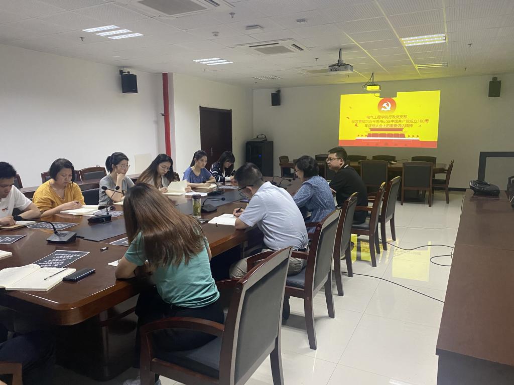 7月1日下午,电气工程学院行政党支部在综合楼1211会议室召开“学习贯彻习近平总书记在中国共产党成立100周年庆祝大会上的重要讲话精神”支部会。支部全体党员参加,会议由支部书记巩晶骐主持。