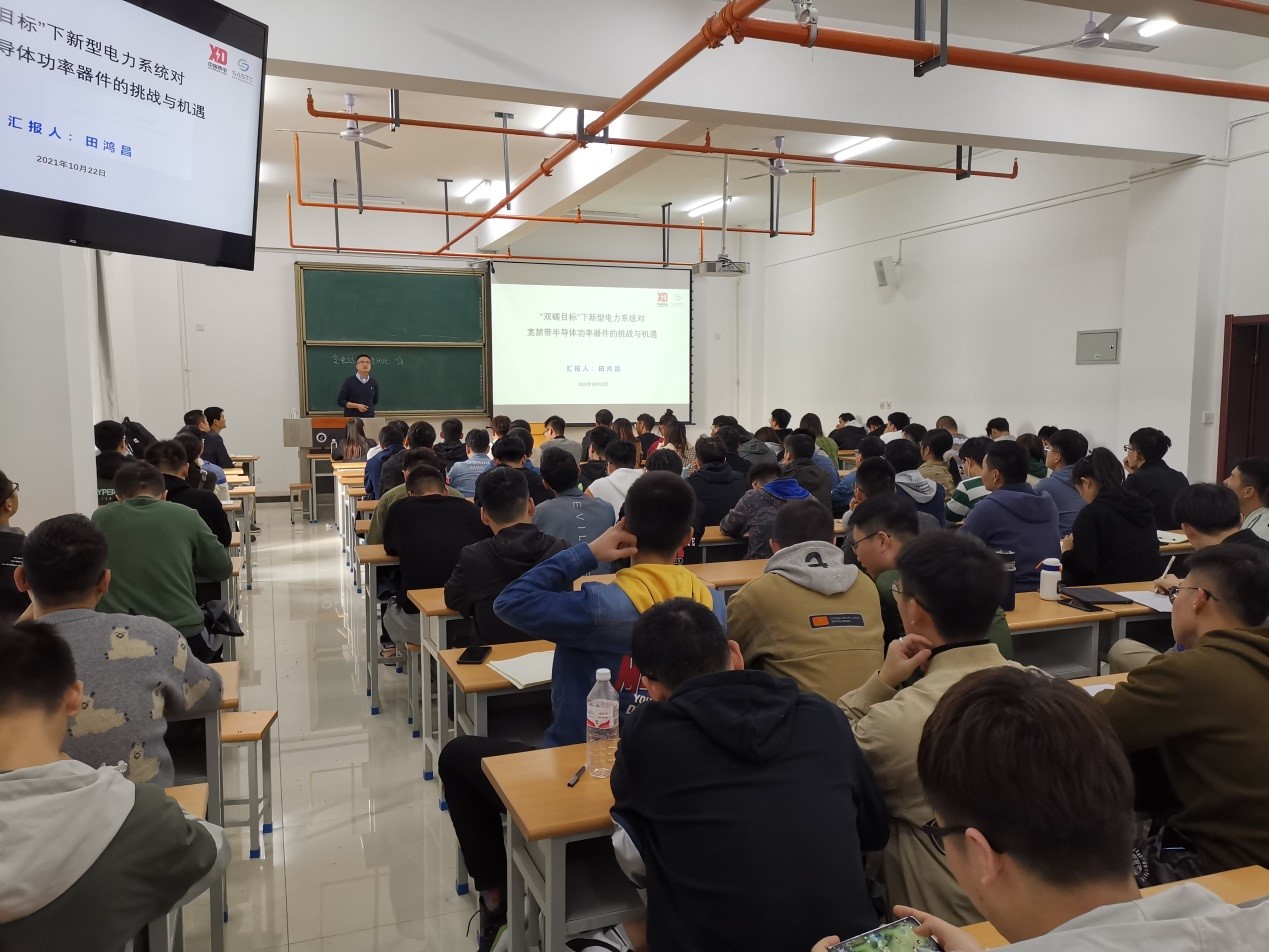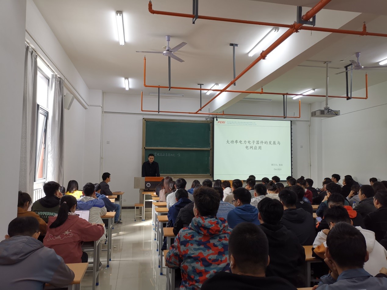 2021年10月22日,我院在西安理工大学曲江校区举办了电气工程教育暨研究生学术年会专家报告会,特邀西安电力电子技术研究所高级工程师张琦博士和陕西半导体先导技术中心技术副总监、西电电力系统有限公司高级工程师田鸿昌博士为师生做了关于新型电力电子器件发展与应用的学术报告。报告会由电气工程学科带头人同向前教授主持,参会师生约300人。