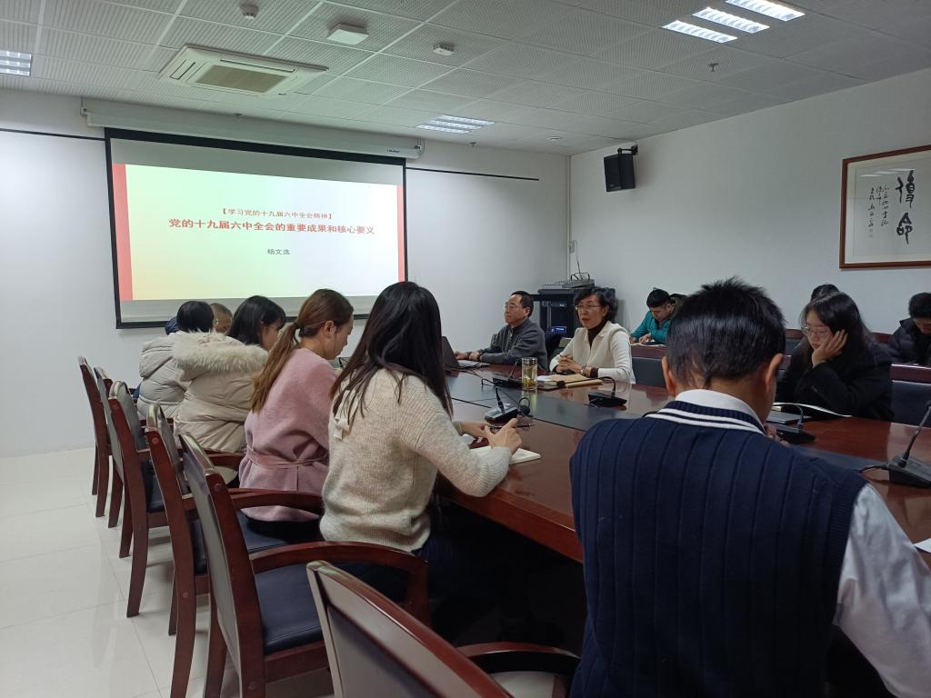 为深刻认识党的十九届六中全会的重大意义,认真学习贯彻会议精神,12月14日上午,我院邀请人文学院院长杨文选教授,在综合楼1211会议室开展了“党的十九届六中全会的重要成果和核心要义”专题学习报告。行政党支部、实验中心党支部、高压所党支部全体党员及全体学生党支部书记参会,会议由党委书记李虹主持。