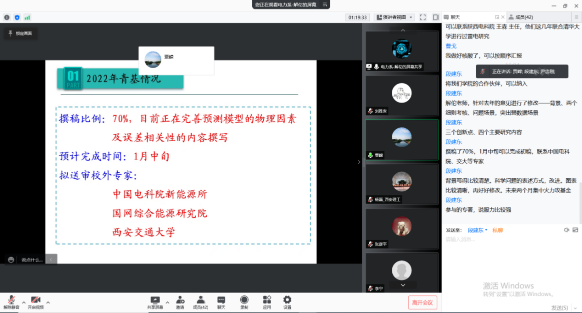 为切实推进我院国家自然科学基金申报工作,学院2021年12月29日举行了青年基金专题交流会。根据疫情防控的工作要求,青年基金交流会以腾讯视频会议形式召开,历时3个半小时。全体申报青年基金的负责人、系所主任、科研主任、院班子成员等40多人参加了会议。贾嵘院长、尹忠刚副院长等主持多项国家的老师,对申报材料进行了逐一点评。