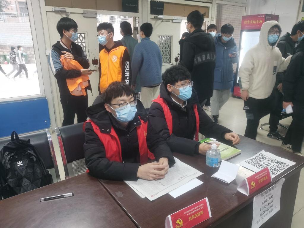 从学校采取“制动”管理至今,学院学生党员帮助辅导员组织核酸检测6轮共计1.2万人次;近260名本、硕、博学生党员级入党积极分子纷纷投入到自身所在公寓开展门禁值班,楼层巡视工作;研究生党支部集思广益,采取“原始办法”--收取每日核酸检测截图,确保“应检尽检”落实到位;帮助发放新年餐券、防疫物资、学校福利,主动承担繁重任务;300余名入党积极分子也在党支部发动下,强烈要求加入战斗,主动轮岗换班,为党员先锋分担。