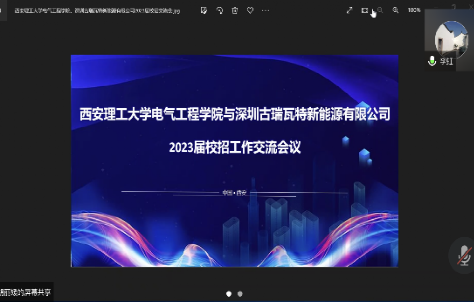 9月13日下午,电气工程学院与深圳古瑞瓦特新能源有限公司召开2023届校园招聘交流会。参加本次会议的有电气工程学院党委书记李虹,副院长段建东,2023届毕业生辅导员赵婷、魏书妍、方筱滨,以及深圳古瑞瓦特新能源有限公司西安研发中心经理葛磊、人力资源部总监尹文君、招聘经理赵赛及相关负责人参加会议。
