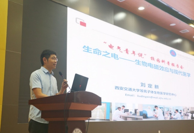 刘定新教授以“生命之电-生物电磁效应与现代医学”为题进行科普报告,通过电磁与生命起源这一贯穿生物电磁特性的基本理论,介绍了人体自身产生的微弱磁场,以及在外加磁场下显示出磁体特性的理论,最后通过电磁波的生物效应介绍了等离子体的医学概况,为现代医学的发展引入了新的发展思路。
