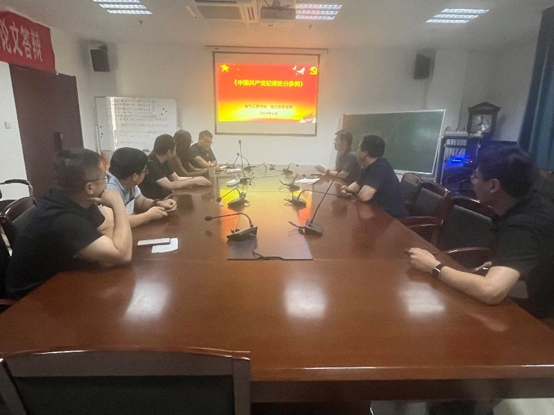 为深入学习《中国共产党纪律处分条例》,深刻认识开展党纪学习教育的重要意义和目标要求,进一步增强中国共产党员教师的政治素养,2024年6月24日下午,电气工程学院电力工程系教工党支部召开了“师德引领,纪律护航”主题党课,会议由党支部组织委员党建副教授主持。