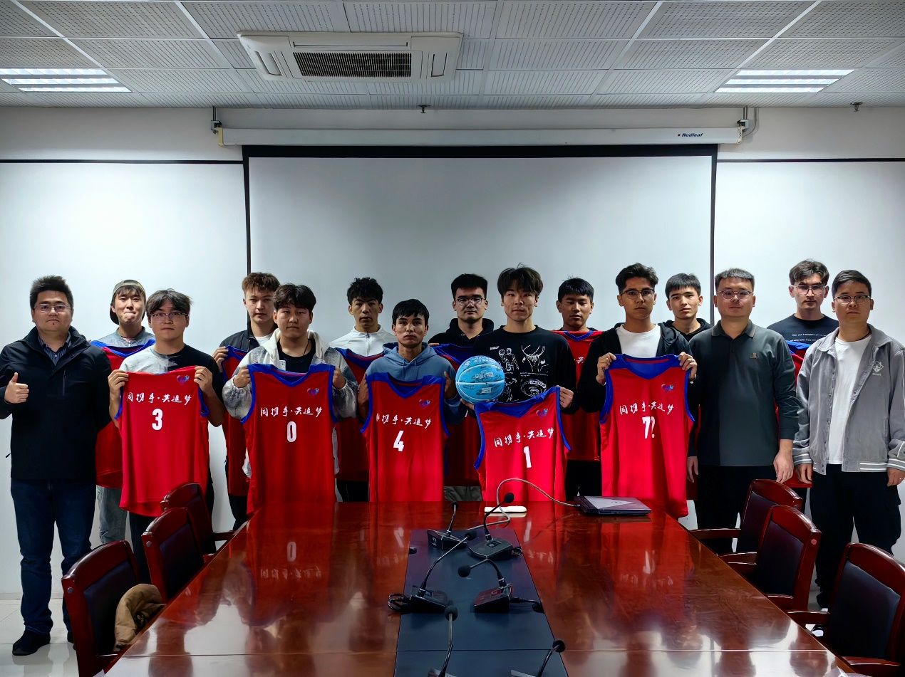 民族管理中心教师孟庆龙、张鹏鹏分别为各民族学生篮球队队员赠送了篮球队服,并表示,民族管理中心重视各民族学生的体育锻炼发展,希望各民族学生篮球队积极推动各民族学生之间的体育文化交流。