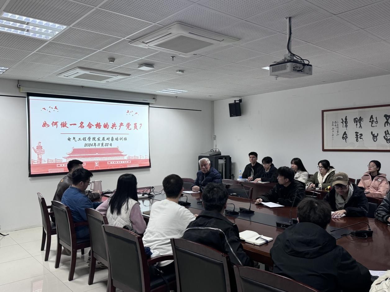 为深入贯彻落实党的二十届三中全会精神,进一步加强发展对象培养教育,增强发展对象对党的认同感和归属感。11月22日下午,电气工程学院邀请校关工委常务副主任孙龙韬老师开展“如何做一名合格的共产党员?”主题党课。发展对象培训班35名学生参加。