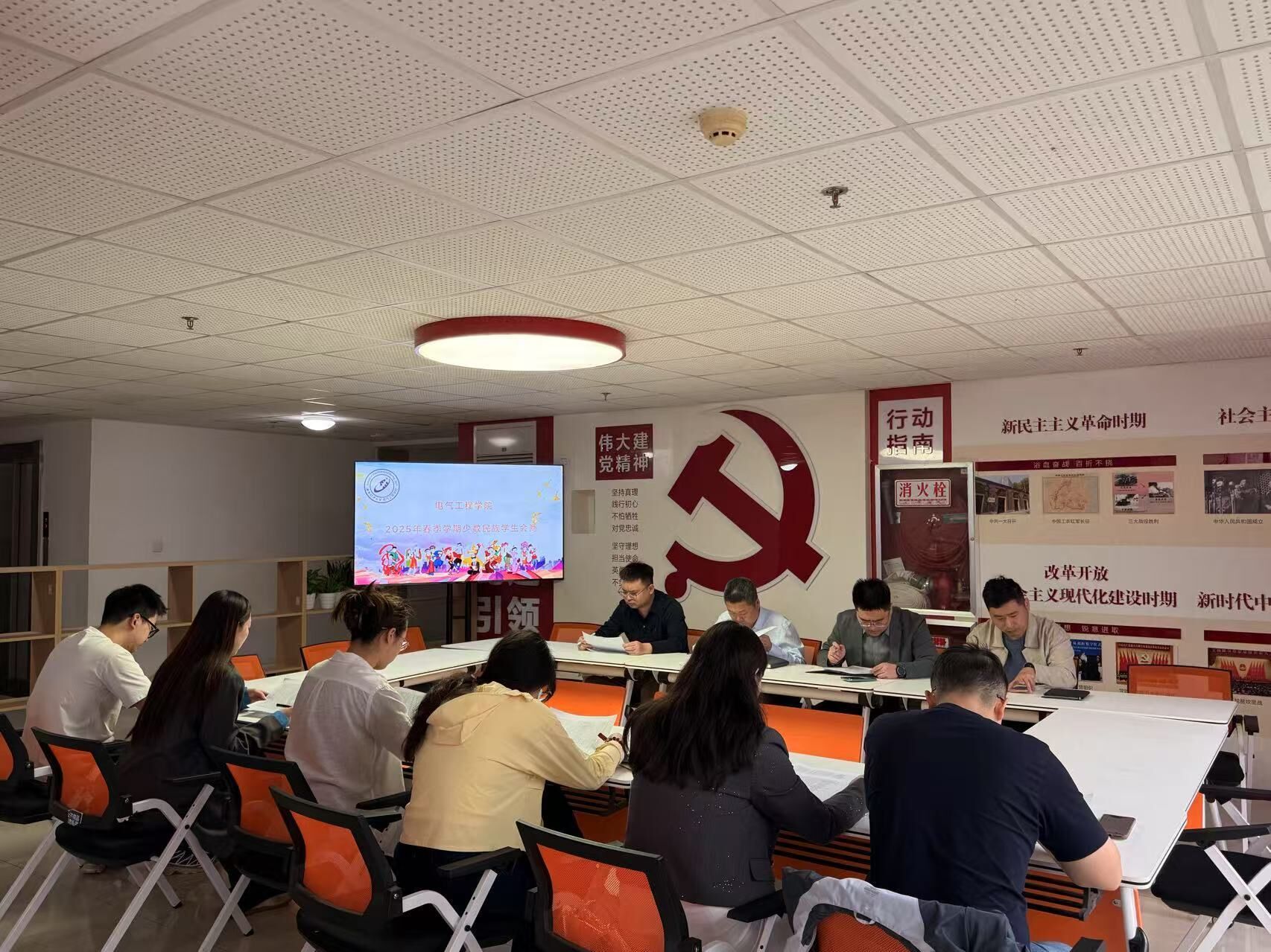 4月11日,为深入学习贯彻习近平新时代中国特色社会主义思想和习近平总书记关于民族工作的重要论述,有效开展铸牢中华民族共同体意识教育,切实做好少数民族学生思想政治教育管理工作,电气工程学院在曲江校区11学生公寓“一站式”学生社区开展2025年春季学期少数民族学生工作第一次会商。学院党委副书记兼副院长何海生、学工办辅导员参加会议,少数民族学生管理中心教师孟庆龙到会指导,会商由学工办主任巩晶骐主持。