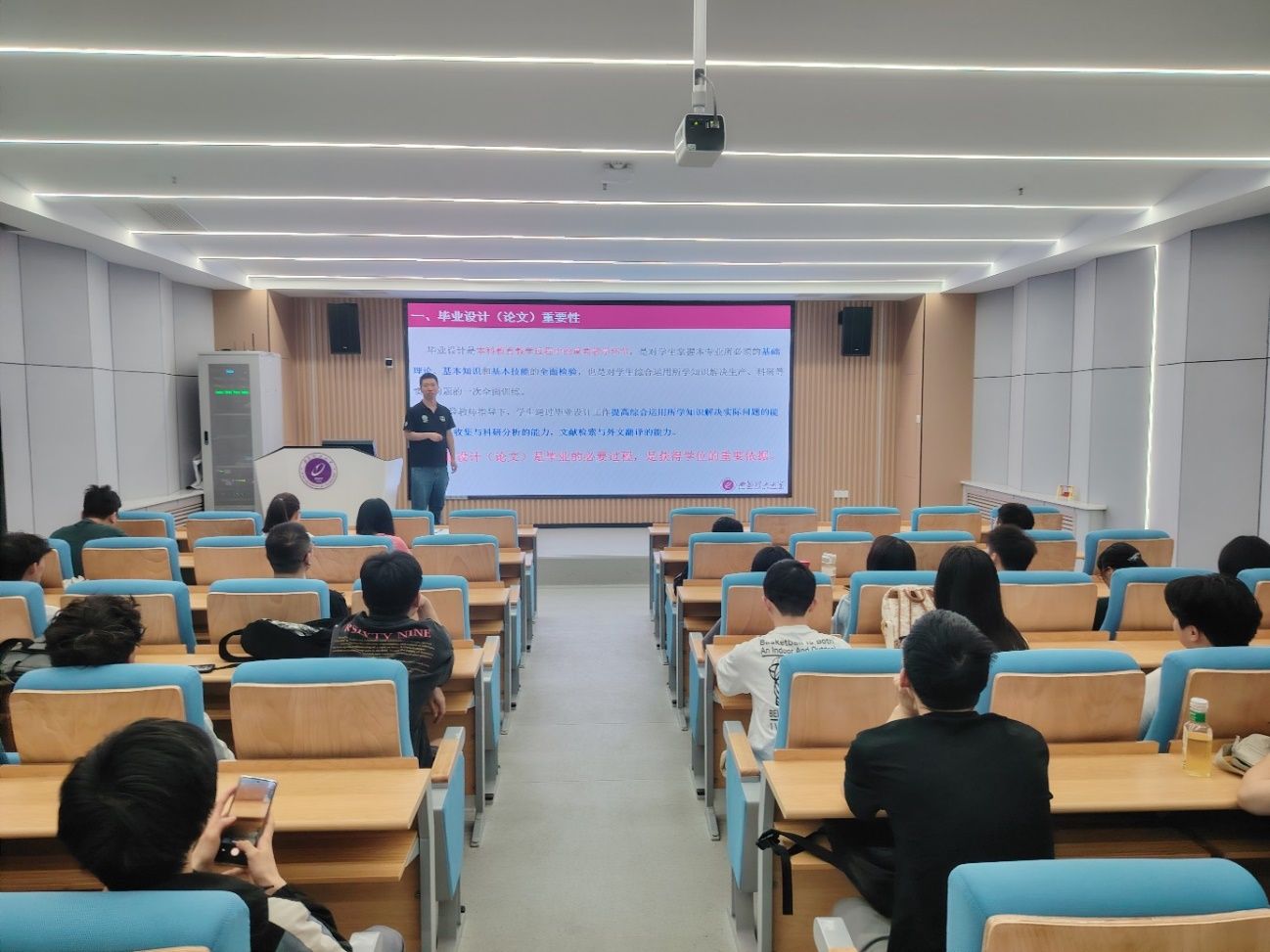2025年5月13日上午,我院举办本科生毕业设计论文写作指导讲座,特邀智能电网与控制工程系钟明航老师作专题报告,讲座围绕“科学规划、规范写作、从容答辩”三大主题展开。