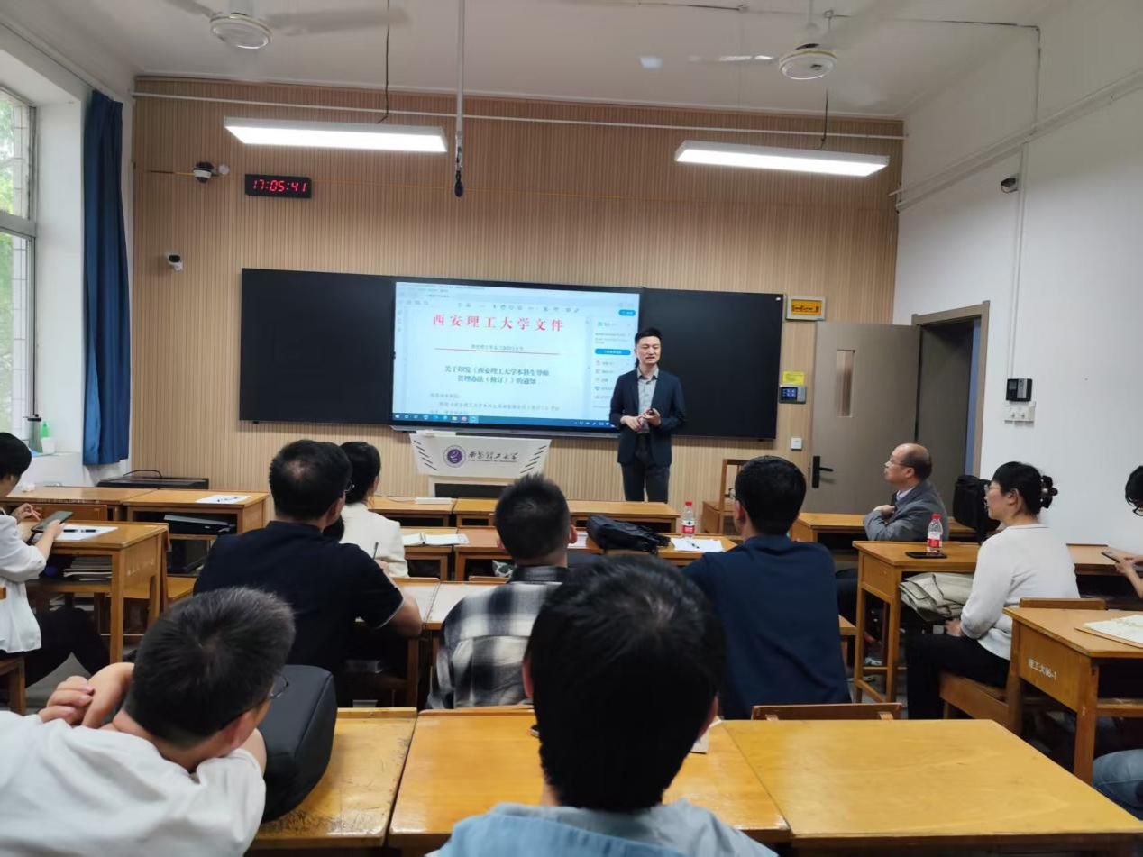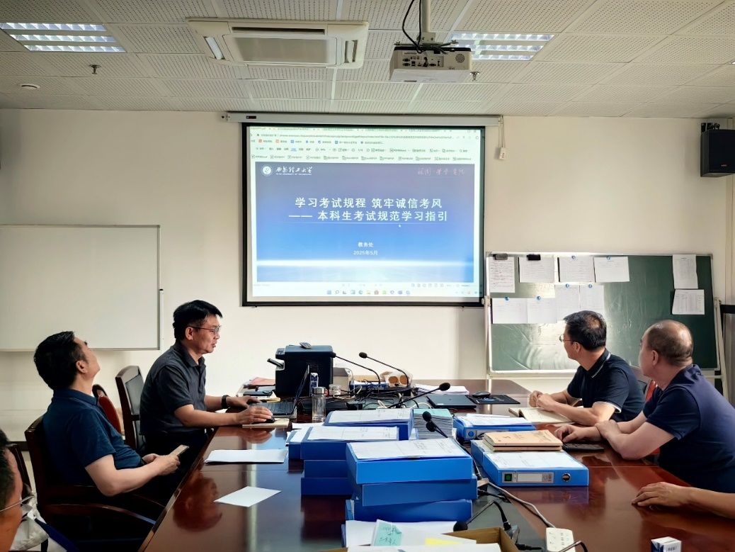 2025年5月9日下午,我院组织开展监考人员专题培训,学院领导、各系主任及教师代表参与此次培训,培训会上集中学习了《西安理工大学本科生导师管理办法(修订)》《西安理工大学本科课程考试规程》和《监考人员监考流程培训指南》等文件,并结合近年来在考试组织过程中易出现问题的薄弱环节和监考流程注意事项等进行了分析解读。