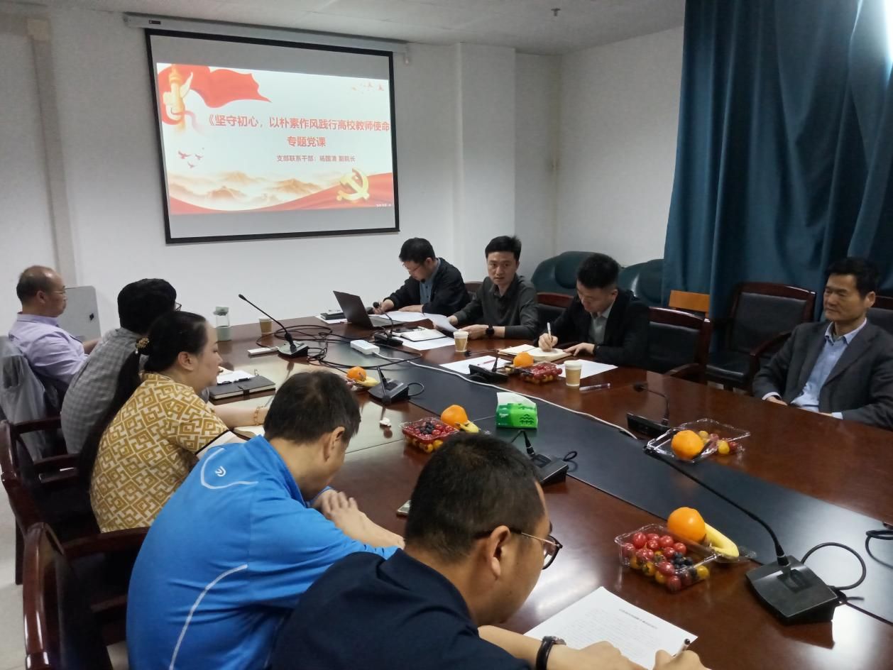 会议首先进行了思想政治理论学习。支部纪检委员刘兴华同志带领大家一起学习《习近平关于加强党的作风建设论述摘编》第2章《作风问题本质上是党性问题》。组织委员尹健宁同志领学了习近平总书记赴贵州云南考察讲话精神。支部联系党员干部杨国清副院长以《坚守初心,以朴素作风践行高校教师使命》为题,结合教师教学、科研、生活三个方面讲深入贯彻中央八项规定精神学习教育党课,支部党员进行了热烈讨论。