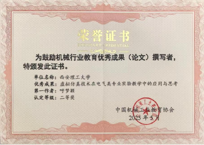 2.呼梦颖老师作为第一作者发表的教研论文《虚拟仿真技术在电气类专业实验教学中的应用与思考》获评优秀论文二等奖。