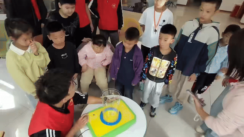 上午9时,系列活动陆续展开。志愿者栾璞羲首先以“自然中的电宝:云层里的电”为主题,借助动画短片和“雅各布天梯”实验,生动讲解了雷电的形成与放电现象;随后,志愿者胡思源带来“召唤电宝:能量转换的力量”课程,通过提问互动和动手实验,引导孩子们理解电能与其他能量形式的转换关系。两节课均注重趣味与实操,让孩子们在直观体验中轻松掌握科学原理。