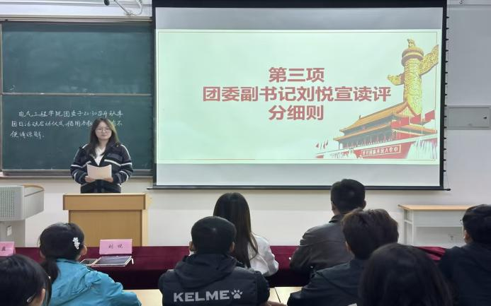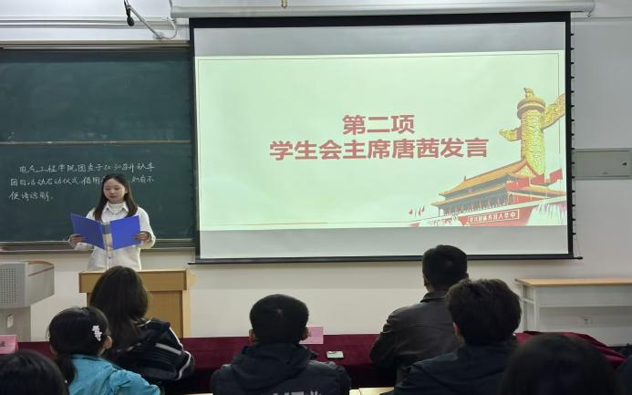 仪式在庄严的团歌声中拉开帷幕。全体成员精神饱满,齐声高唱,展现了电气学子昂扬向上的精神风貌。随后,学生会执行主席唐茜作动员发言。她结合自身工作与学习经历,阐述了主题团日活动在凝聚青年、服务大局方面的重要意义,鼓励各位团干充分发挥骨干引领作用,精心策划、广泛动员,切实将团日活动打造为引领青年思想、激发青春能量的生动课堂。最后,院团委副书记刘悦为全体与会团干详细解读了本次秋季主题团日活动的评分细则,围绕思想引领、形式创新、参与广度与活动成效等多个维度进行了系统说明,为各支部后续活动的策划与开展提供了明确指引。