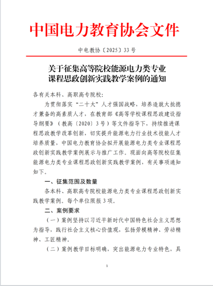 电力行业高等院校电力类专业课程思政成果教学案例征集与推广活动由中国电力教育协会组织,旨在持续推进课程思政教学改革创新,切实提升电力行业技术技能人才培养质量,培养造就大批德才兼备的高素质人才。此次共有42个课程思政教学案例参与遴选,经过专家评审,共有6个案例获评优秀。