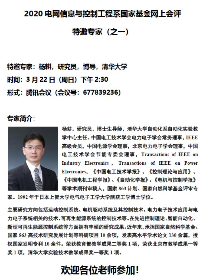2020电网信息与控制工程系国家基金网上会评(一)