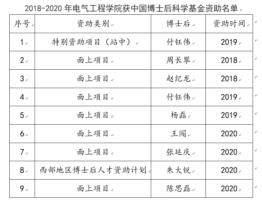 此批次,全国共有3977位博士后获得面上资助,我校入选人数位列全国63位、在陕高校第5位。全国共有50位电气工程博士后获得面上资助,我院入选人数位列全国电气工程博士后站第3位,其数量与质量均创新高。