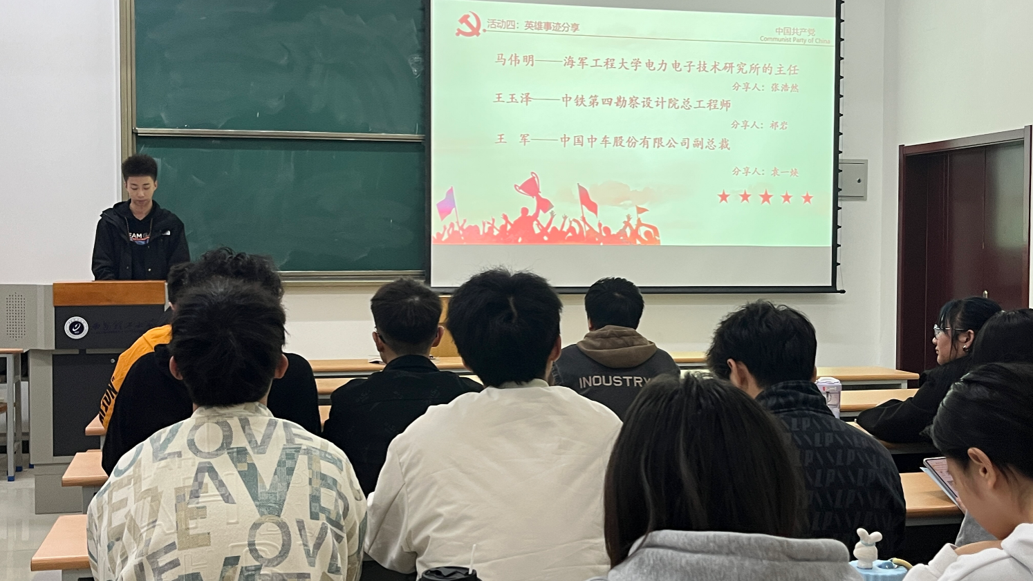 21级党支部三位同学分别从国家科技、军事、国防发展三个方面中,为大家分享了电气工程领域的党员们的先进事迹。这些先进事迹,让大家进一步更加坚定为实现中华民族伟大复兴的中国梦贡献青春力量的理想。